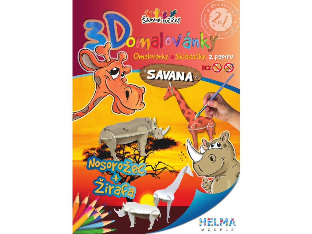 Originální papírová 3D skládačka k vymalování dle vlastních představ + omalovánky A4. Bez použití nůžek, nebo lepidla jsou 3D omalovánky Helma Models vhodné pro děti od 4 let.Doplňkové parametry