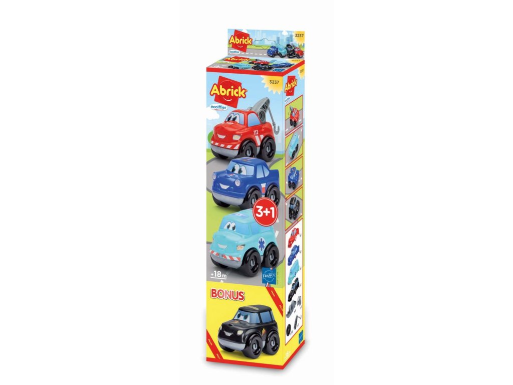 Sada autíček s očíčky z řady Abrick obsahuje odtahovku, hasičské auto, policejní auto a "zlodějské" auto. Délka auta 10 cm.Doplňkové parametry