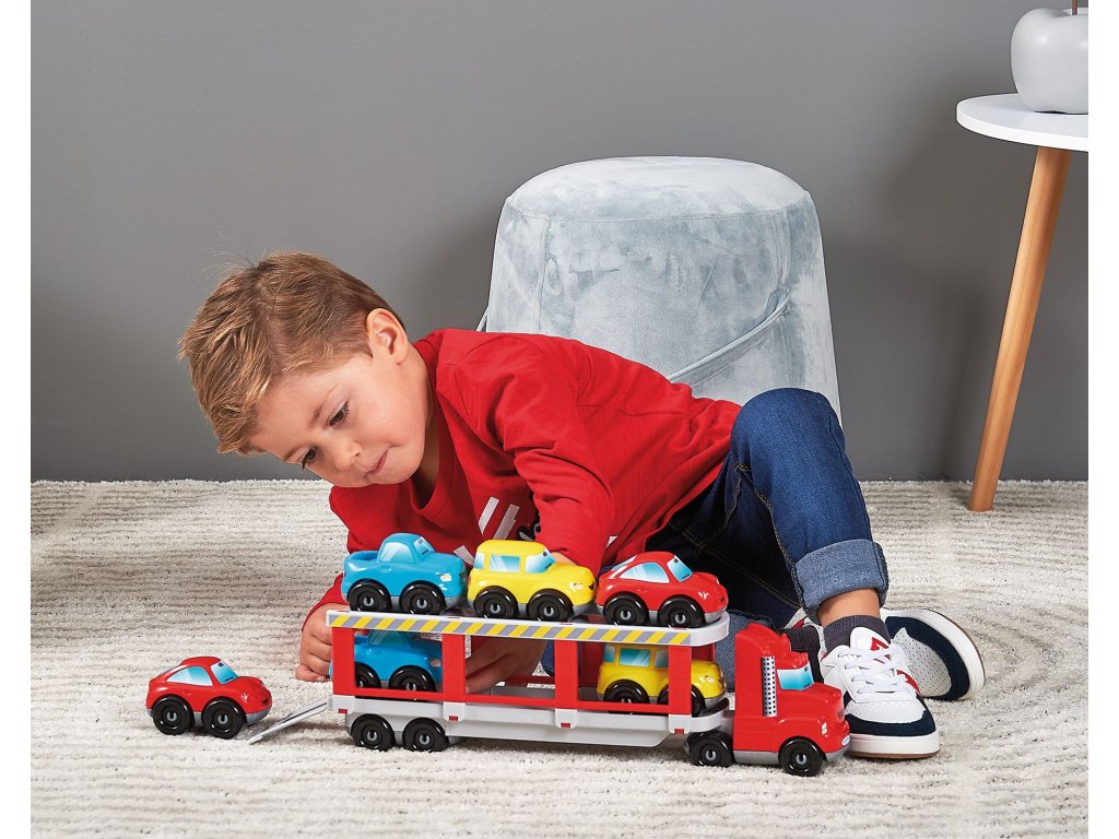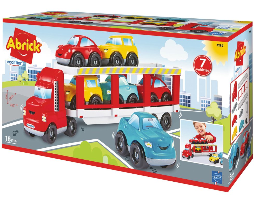 Transportér z řady Abrick pro přepravu 6 osobních aut má sklopnou rampu, přes kterou lze auta nakládat a vykládat. Včetně šesti barevných autíček. Rozměry (DxŠxV): 41 x 8,5 x 17 cm.Doplňkové parametry