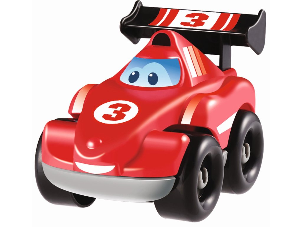 Tři modely závodních aut s vyměňovatelnou karosérií. Každý model závodního auta s legračním obličejem je bez ostrých hran a snadno se drží. Ideální pro malé dětské ručičky. Rozměry produktu (DxŠxV): 10 x 6,5 x 6,5 cm.Doplňkové parametry