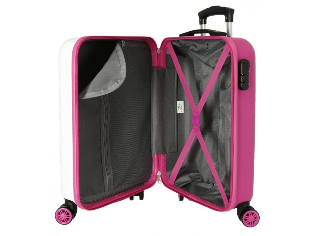 Kabinový kufr Disney Minnie Mouse In Love v růžovo-bílém provedení je ideální společník na každou cestu. Vyroben z odolného ABS plastu, nabízí 4 otočná kolečka, kombinační zámek a praktický vnitřní prostor pro pohodlné balení. S objemem 35 la váhou pouhých 2,5 kg spojuje praktičnost, lehkost a Disney styl.
