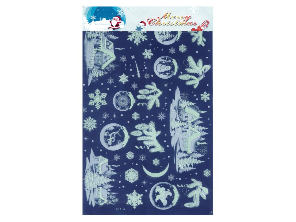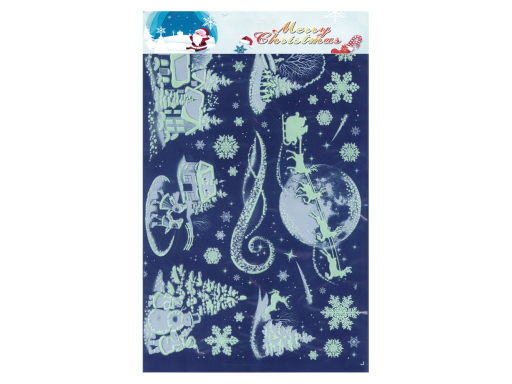 Adhezní nálepky fluorescenční 3D 31,5 x 50 cm (mix vánočních designů /cena 1 bal.)