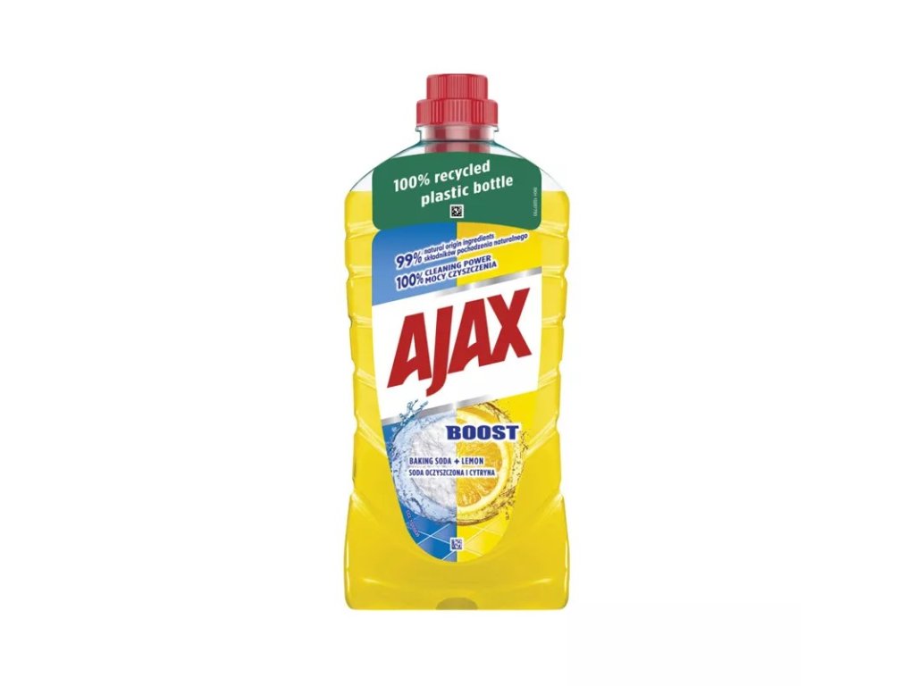 Ajax Boost s aktívnou sódou je univerzálny čistiaci prostriedok na všetky druhy podláh. Hĺbkovo, dokonale a šetrne čistí bez námahy a oplachovania, povrchy sú lesklé a bez šmúh. Použitie na podlahy v celej domácnosti, na plochy v kuchyni, kúpeľni a pod.