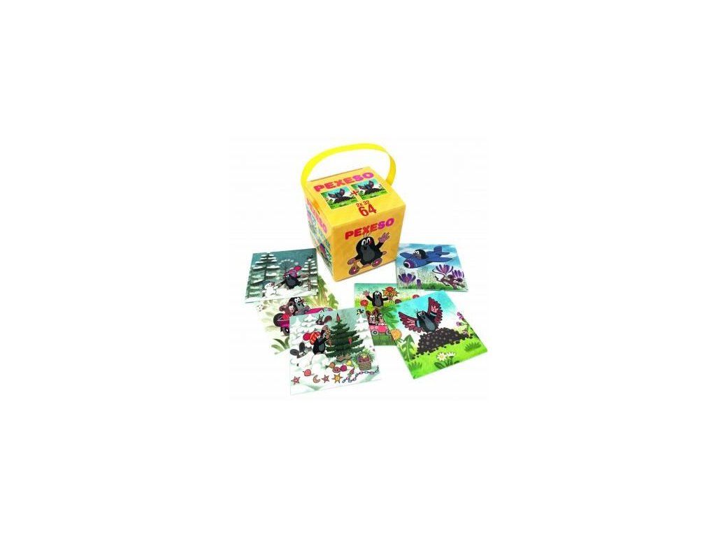 Předstříhané pexeso Krtek v papírové krabičce. Box 6 x 6 x 6 cm obsahuje 64 kartiček. Provedení: 64 ksDoplňkové parametry
