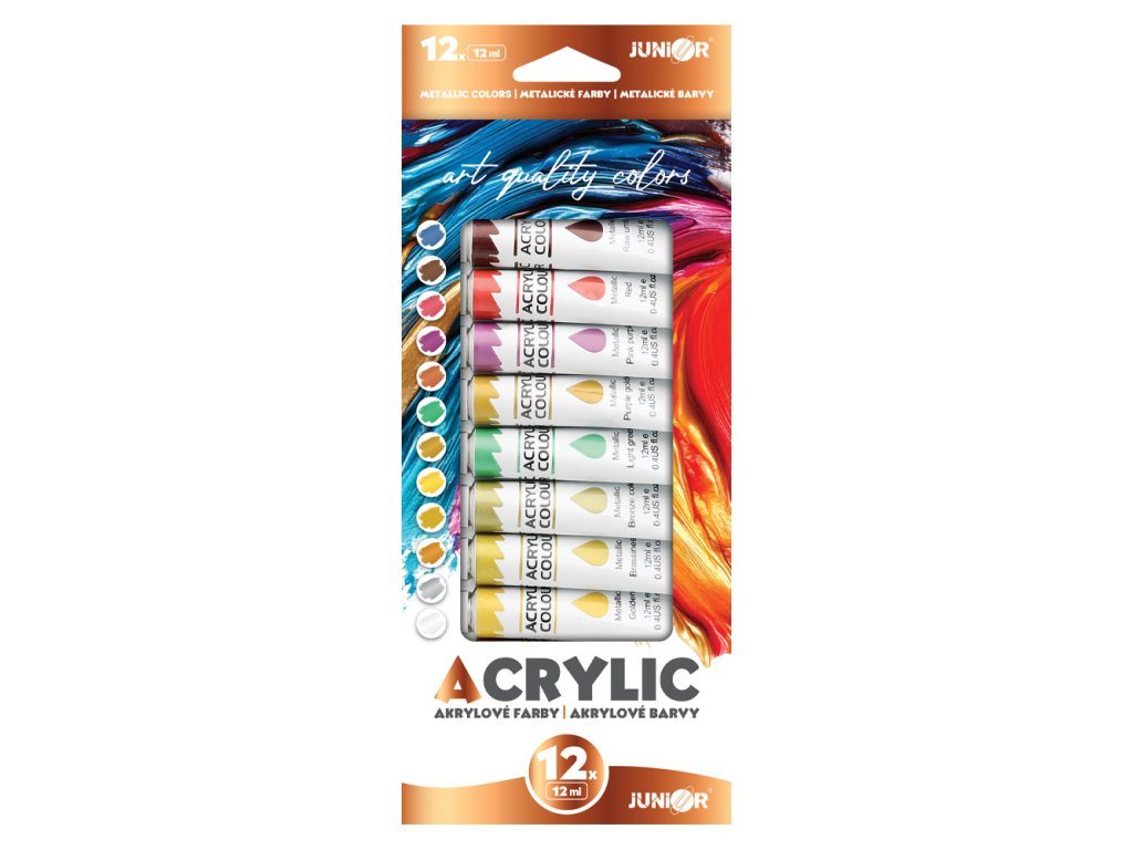 Akrylové barvy JUNIOR 12 ml - sada 12, metalické barvy