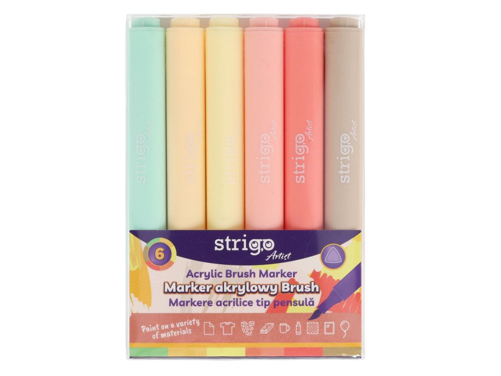 Barevné akrylové popisovače, štětcové. Balení obsahuje 6 barev. Provedení: 6 barevDoplňkové parametry