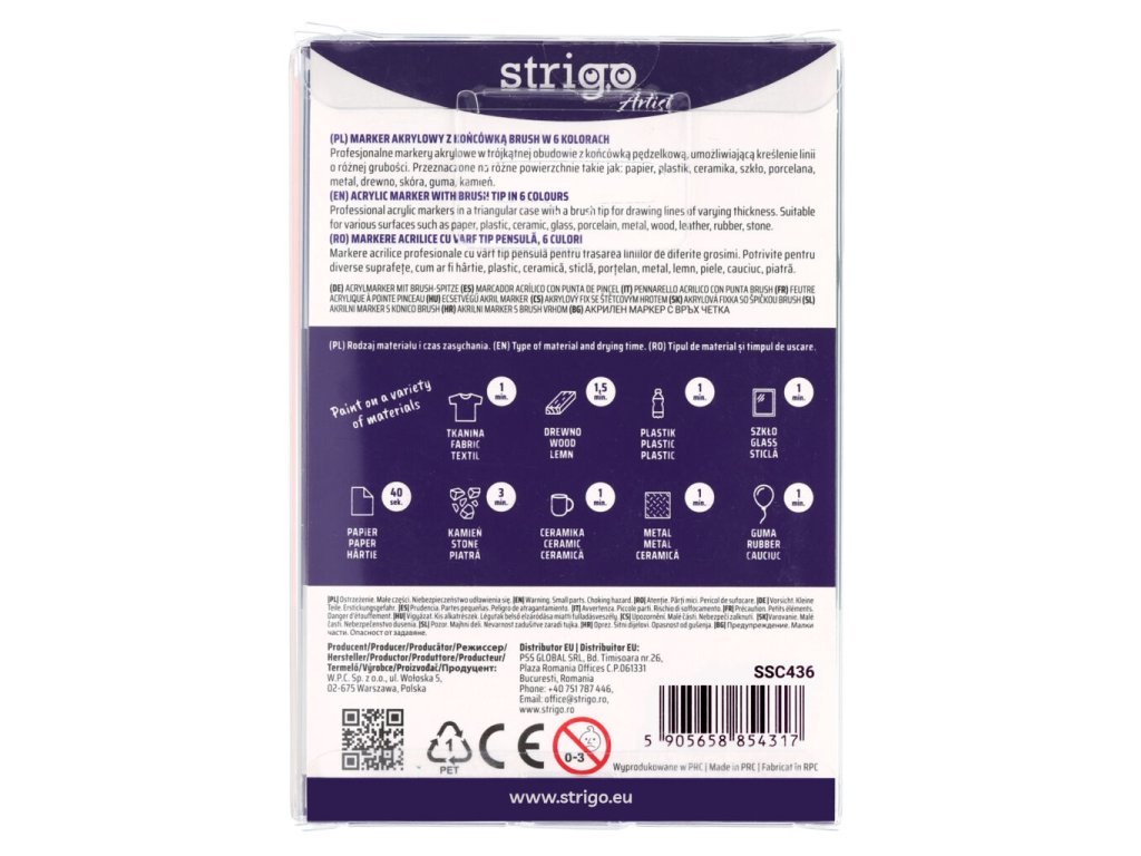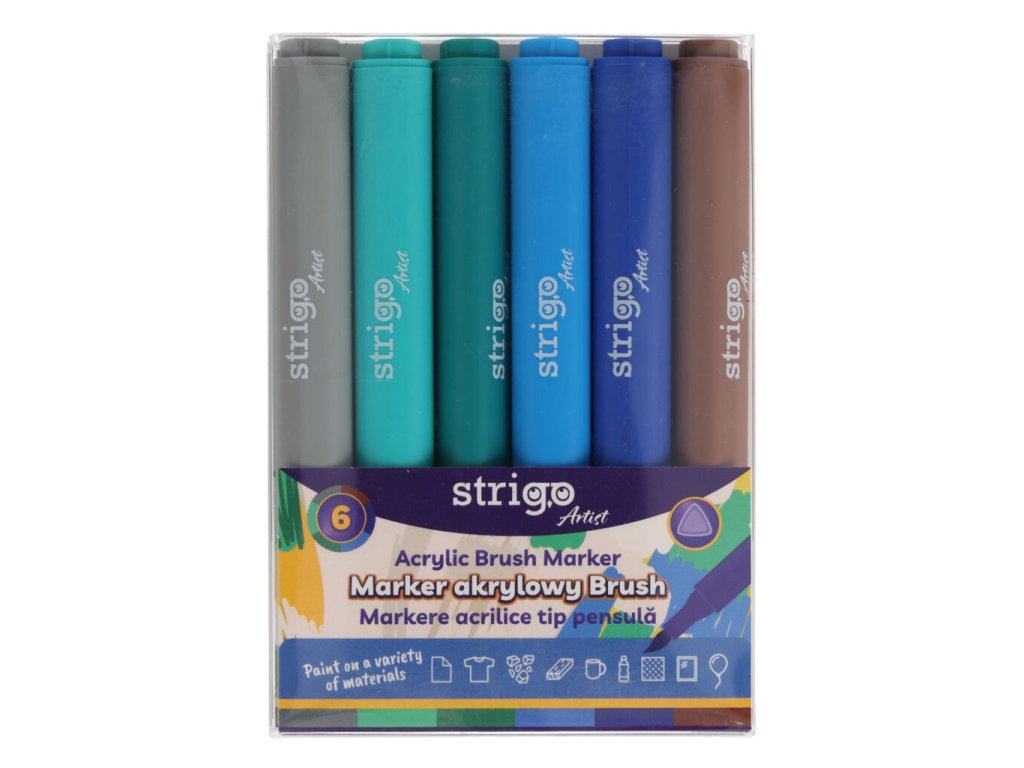 Barevné akrylové popisovače, štětcové. balení obsahuje 6 barev. Provedení: 6 barevDoplňkové parametry