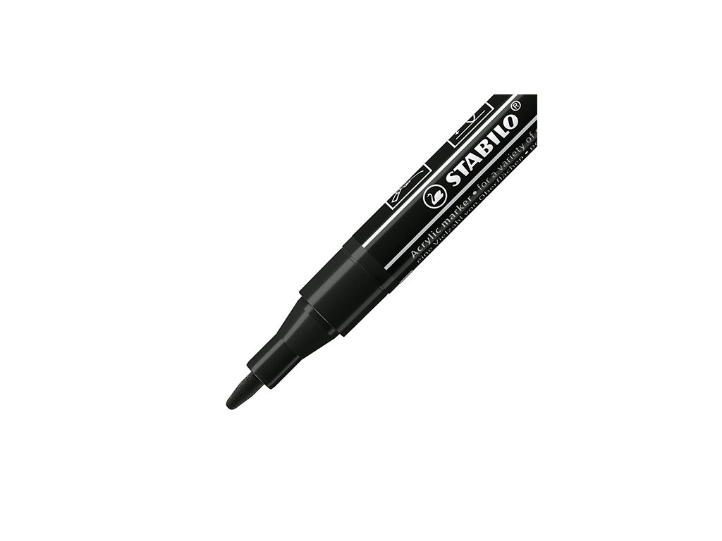 S řadou STABILO FREE Acrylic Marker můžete téměř neomezeně navrhovat a individualizovat. K dispozici jsou popisovače se třemi pečlivě vybranými variantami hrotů a až 20 krycími barvami. Neprůhledná a světlostálá pigmentová akrylová barva, vhodná na téměř všechny povrchy, od papíru přes kámen až po keramiku, umělou kůži a dřevo. Každý může nechat volný průběh své kreativitě při psaní, malování, značkování, šrafování a konturování.Doplňkové parametry
