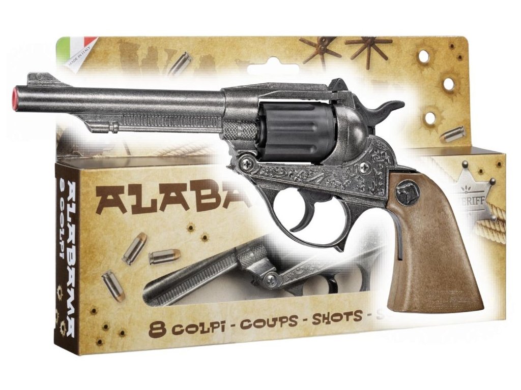 Kapslíková pistole kovbojská, 8miranná, kovová. Vhodné pro děti od 6 let.Doplňkové parametry