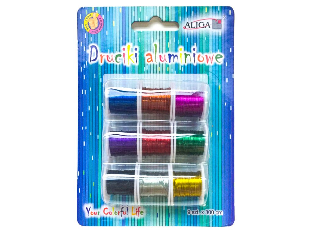 Balení obsahuje 9 barev hliníkových drátků na špulce. Každý drátek má 0,3 mm x 3 m.Doplňkové parametry