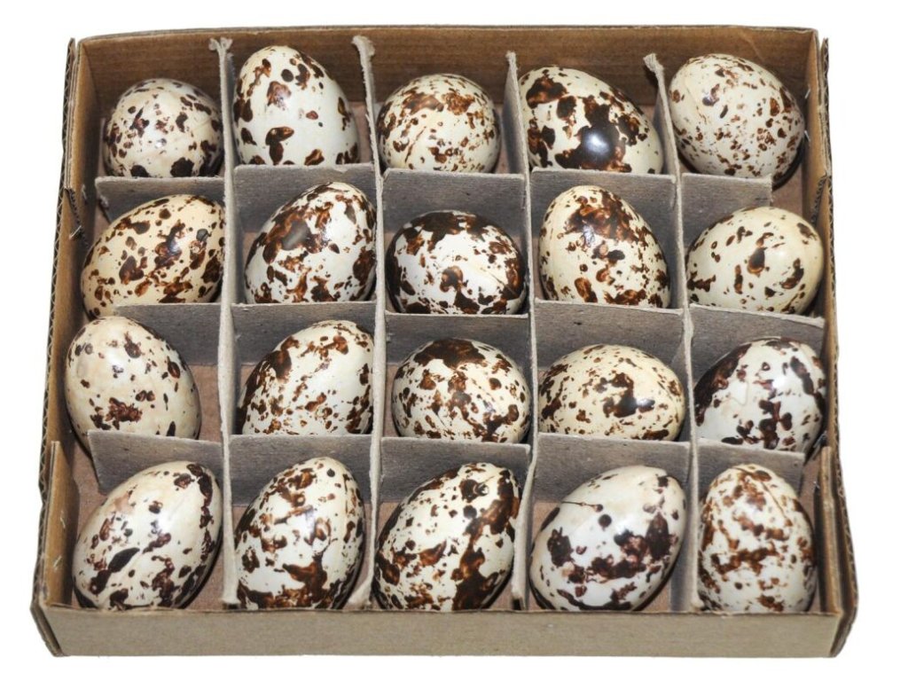 Plastové křepelčí vajíčka o průměru 3,5 cm. V balení 20 ks.Doplňkové parametry