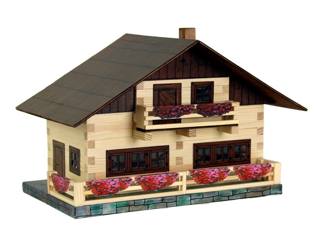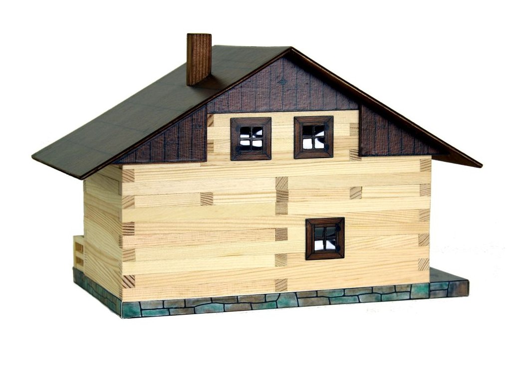 Dřevěná slepovací stavebnice obsahuje dřevěné hranolky daných délek ke stavbě roubených stěn, díly na střechy a štíty, kartonové výseky oken a dveří i předtištěné papírové potisky. Součástí stavebnice je schematický montážní plán. Ve stavebnicích HOBBY KITS naleznete vše potřebné k sestavení. Ke stavbě slouží jednoduché obrázkové návody se symboly jednotlivých úkonů, a proto je můžou sestavovat děti po celém světě. Základním stavebním materiálem jsou přesně zhotovené hranoly z borového dřeva a rozměru 9×9 mm v délkách od 16 do 230 mm určených ke stavbě roubených stěn. Plochy střech, štítů, pavlačí a teras jsou zhotoveny z překližky 3 mm a polepují se papírovými potisky. Funkční dveře a okna zasklená folií jsou z potištěného kartonu. Jednotlivé stavby se slepují lepidlem na dřevo a papír (není obsahem). Součástí návodu jsou malé kapitoly ze stavebního oboru a historie lidové architektury. Modely staveb jsou v měřítku 1:32. Hotové stavby jsou estetickými doplňky dětských pokojíčků, využívají se ke hrám s autíčky, zvířátky, vojáčky i panenkami, o vánocích mohou tvořit základ lidového Betlému.Doplňkové parametry