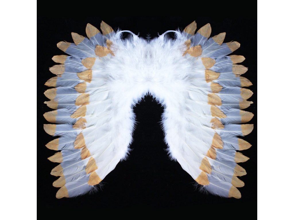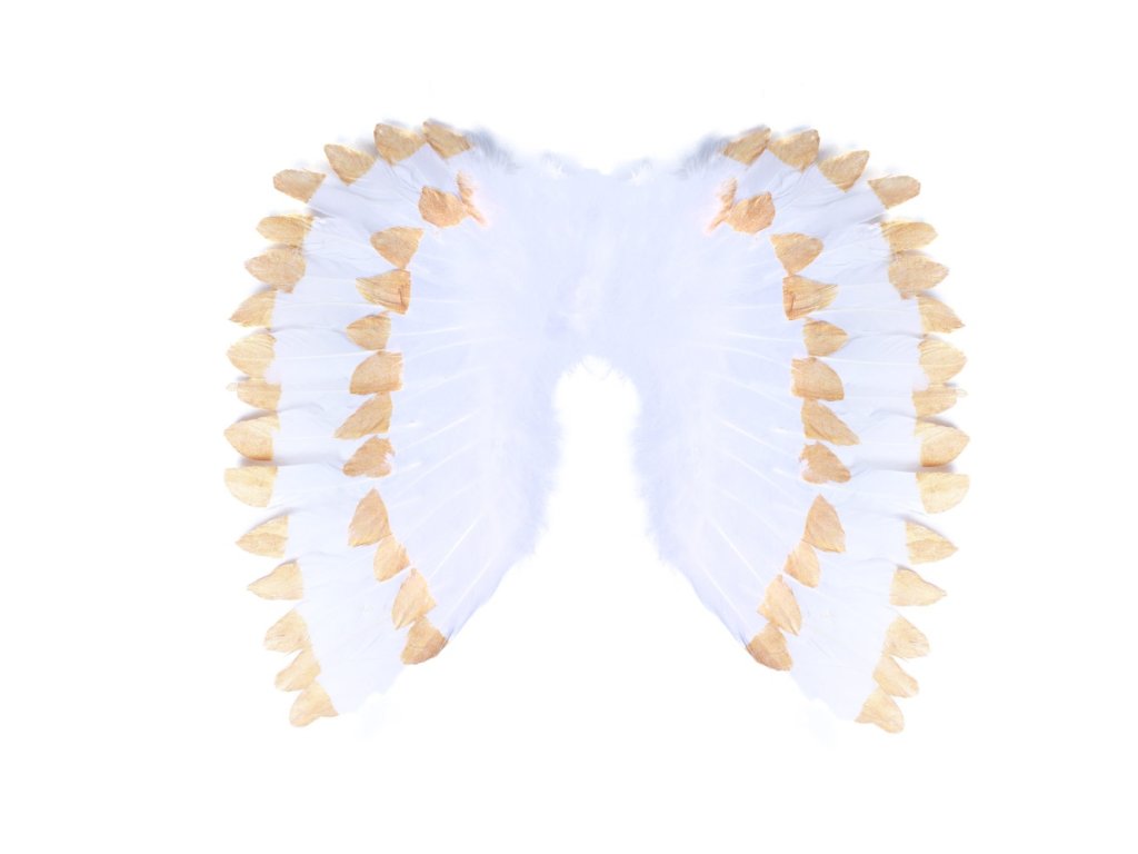 Překrásná křídla pro skutečné anděly se sněhově bílým peřím zdobeným zlatými třpytkami! Tato nebeská křídla jsou skvělým doplňkem k andělskému kostýmu. Rozměr křídel po rozložení je cca 67 x 46 cm.Doplňkové parametry