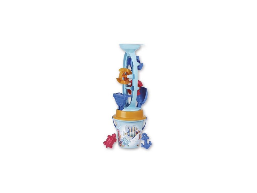 7dílná sada na písek, vyrobená z kvalitních plastů v Itálii. Obsahuje: Kyblík průměr 17 cm, výška 16 cm, sítko, lopatku a hrabičky, mlýnek se třemi lopatkovými koly výšky 40 cm a dvě tvořítka. Sada: výška 54 cm, váha 0,63 kg. Doporučený věk od 12 měsíců.Doplňkové parametry