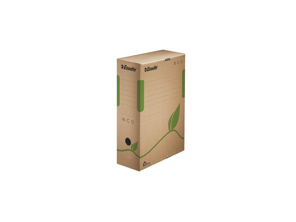 Archivní boc ECO. Produkty "Eco" nabízejí ekonomické a ekologické řešení v jednom 100% recyklovaný (85% z komunálního odpadu) a 100% recyklovatelný karton v hnědé barvě. Rozměry: 100x327x233 mm.Doplňkové parametry