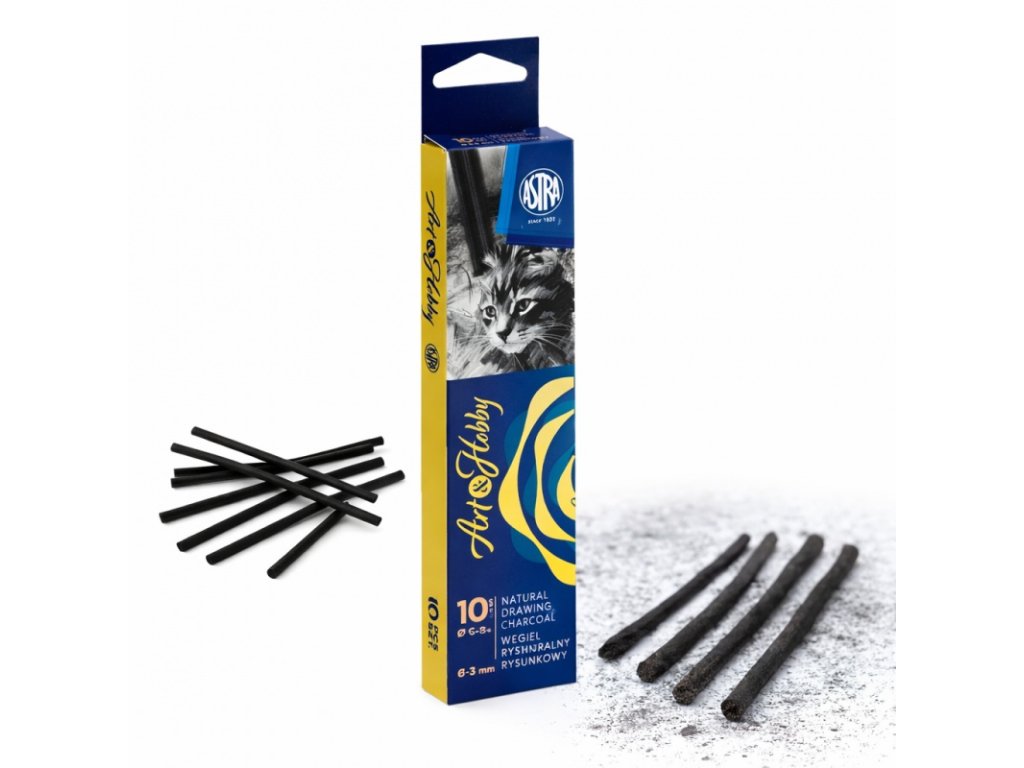 Černý přírodní uhel je vhodný pro velmi jemnou kresbu. Je vyráběn je z dřevěného uhlí (z vybíraného kvalitního vrbového dřeva) přesně definovaných vlastností. Tvar tyčinky je mírně pokroucený, povrch má charakter dřeva. Zboží máme skladem, připraveno k odeslání.