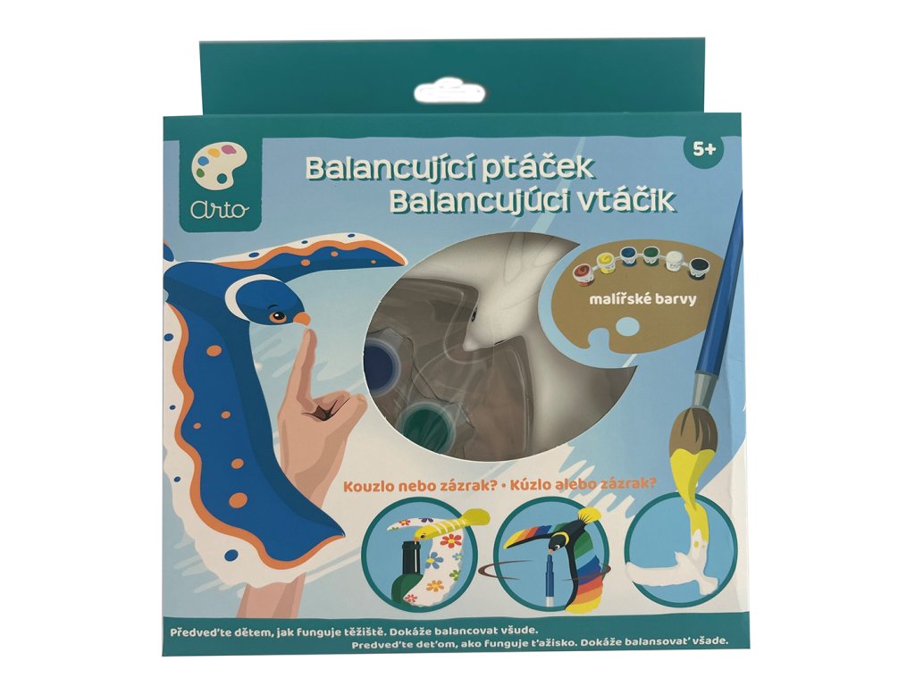 Vymaluj si ptáčka dle své fantazie. Ptáček je tak skvěle vyvážen, že drží na zobáčku na jakémkoliv rovném povrchu.Doplňkové parametry