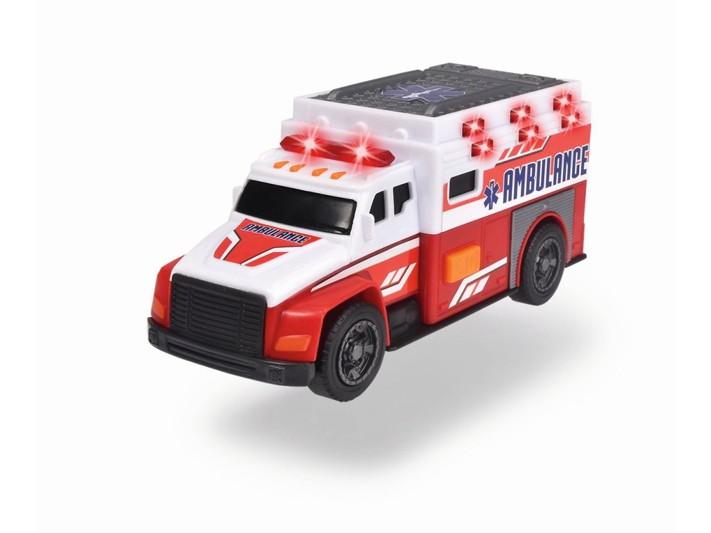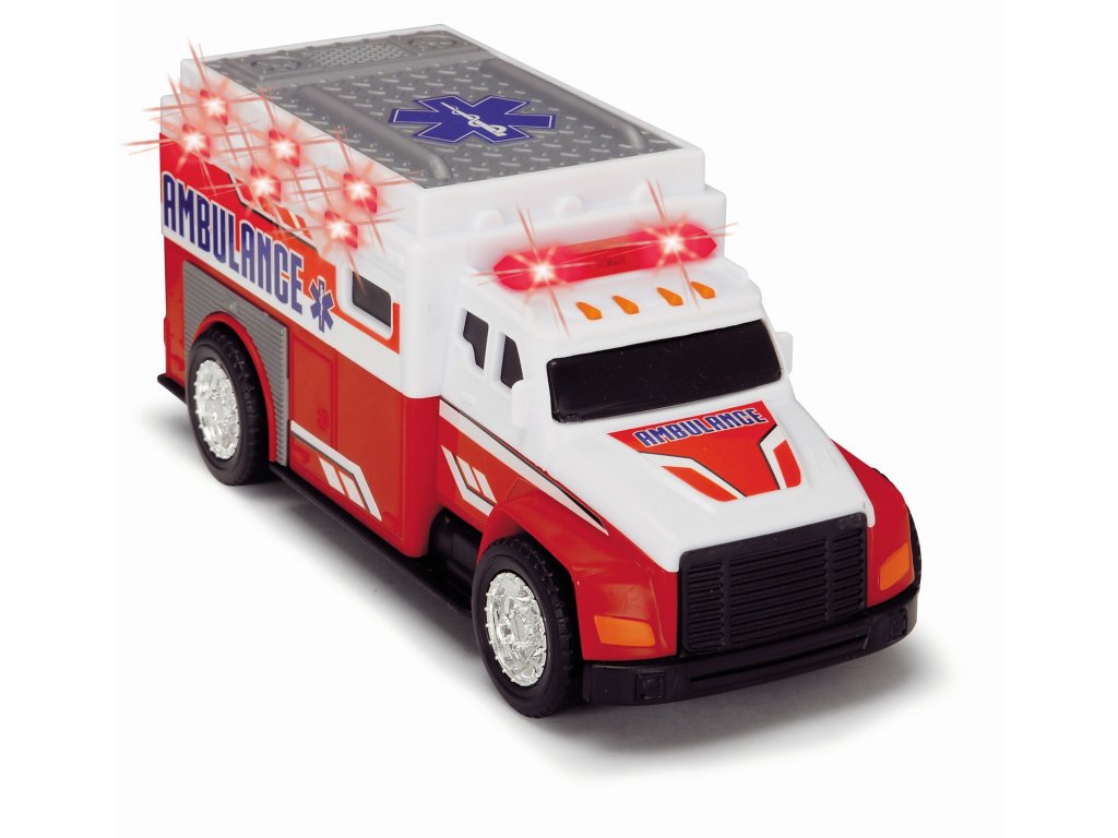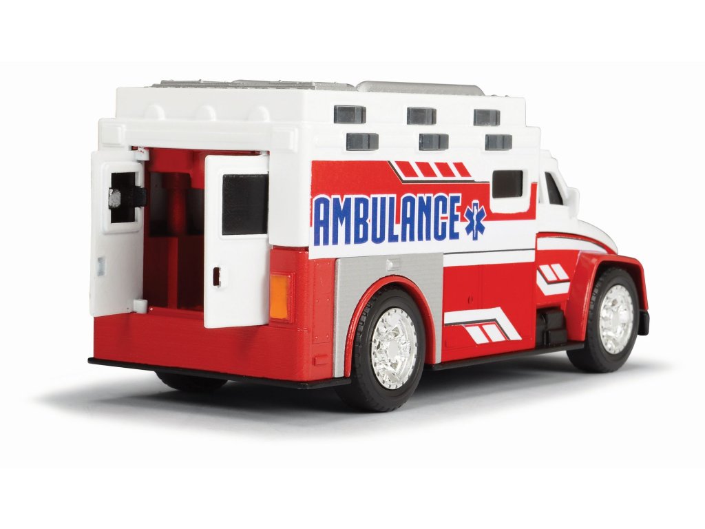 Auto ambulance na volnoběh se světelným a zvukovým efektem. Otevírací zadní dveře. Délka 15 cm.Doplňkové parametry