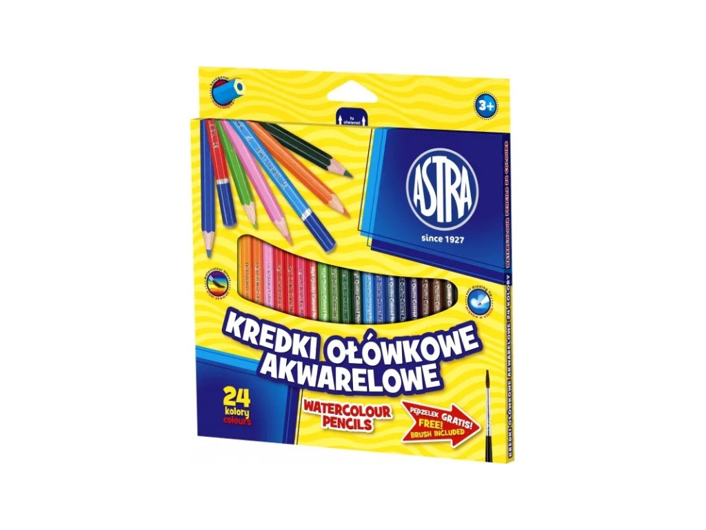 Kvalitní akvarelové barvičky, které obsahují ve vodě rozpustné barvy. Vhodné pro školáky, studenty umění a mladé umělce s talentem, pomocí vody a štětce jimi vykouzlíte neuvěřitelné efekty. Souprava obsahuje 24 barviček v jasných odstínech uložených v papírové krabičce + štětec na dotváření akvarelových efektů. Pohodlný pocit z kreslení od renomovaného výrobce ASTRA POLSKA.