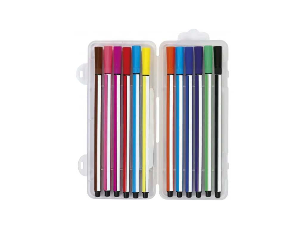 12-kusová sada klasických šestihraných popisovačů ASTRA s odolným hrotem, s inkoustem na vodní bázi. Šířka stopy 2mm. Vhodné pro vybarvování a zvýrazňování i větších ploch, pro silné výrazné čáry. Hrot odolný vůči zatlačení.• ergonomický šestihranný tvar, široké pohodlné držení v ruce