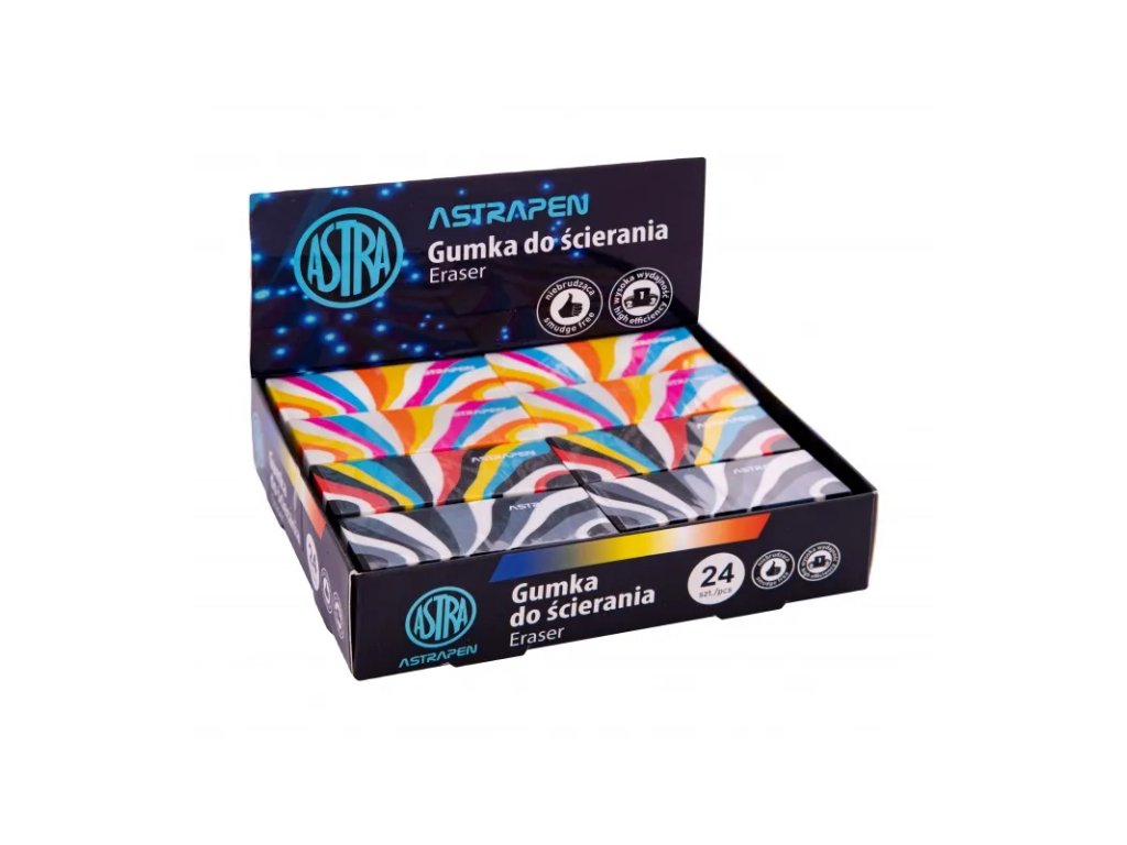 Barevná měkká guma na grafitové tužky a barvičky. Nenarušuje strukturu papíru, nešpiní, super výkonná.• 55 x 23 x 9mm