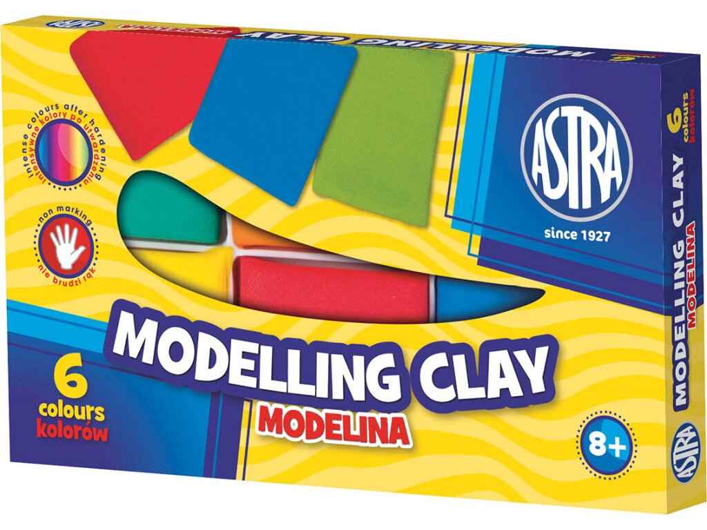 Modelína Astra obsahuje 6 základních barev: žlutá, zelená, modrá, červená, černá a bílá o hmotnosti 130 g. Hmota je na začátku tvrdší a její změkčení v dlaních může trvát 5 -10 minut. Modelína je poté měkká a krásně se s ní pracuje. Vytvrdne po upečení v troubě vyhřáté na cca 110 ° C až 130 ° C. Modelínu pečeme zhruba 30 minut. Po vytažení z trouby výtvory můžeme potřít olejem nebo postříkat lakem pro uchování zářivějších barev.Doplňkové parametry