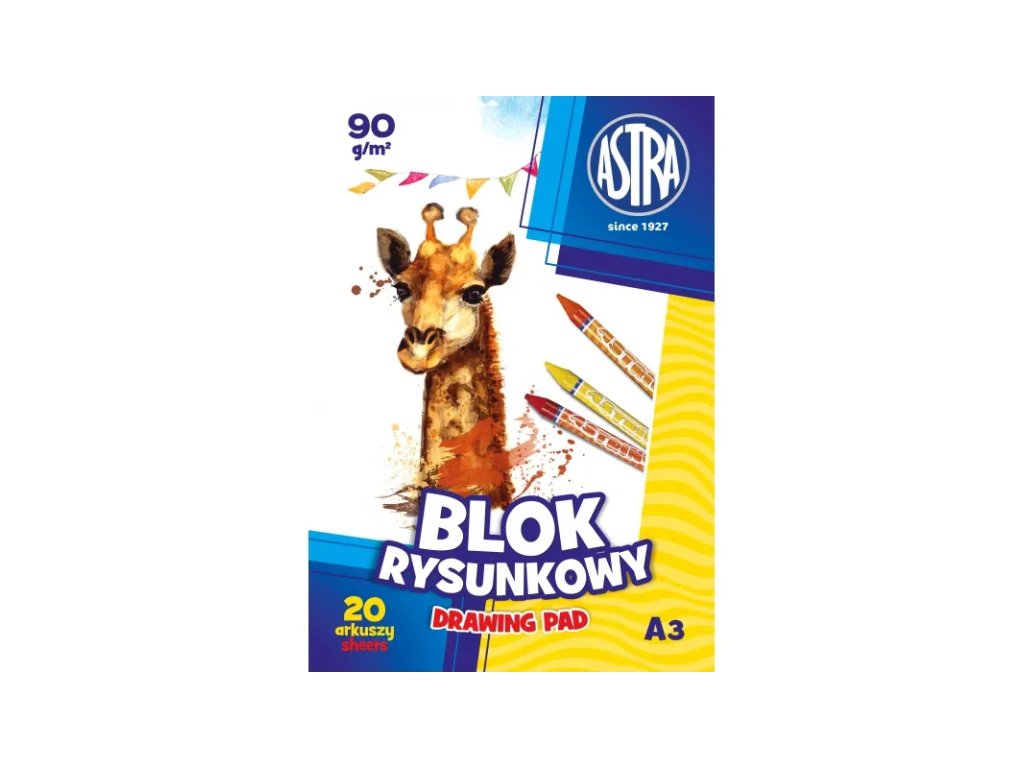 Náčrtník A3 určený pro kreslení a náčrty pro děti, žáky, studenty. Ověřená kvalita od renomovaného evropského výrobce ASTRA POLSKA. Zboží máme skladem, připraveno k odeslání.• lepený blok kreslících volumenových papírů