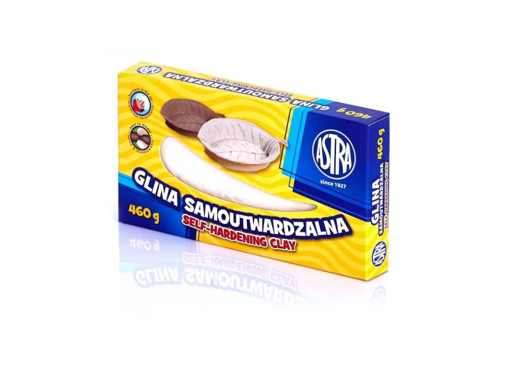 Samotvrdnoucí hlína od společnosti ASTRA je modelovací materiál vyrobený z přírodních surovin, který tvrdne na vzduchu. Je určen k modelování figurek, bižuterie, dekoračních předmětů, nádob jako jsou dózy, tácky nebo misky. Je jedním z nejvšestrannějších tvůrčích produktů na trhu.• balení obsahuje 460g hmoty v bílém odstínu