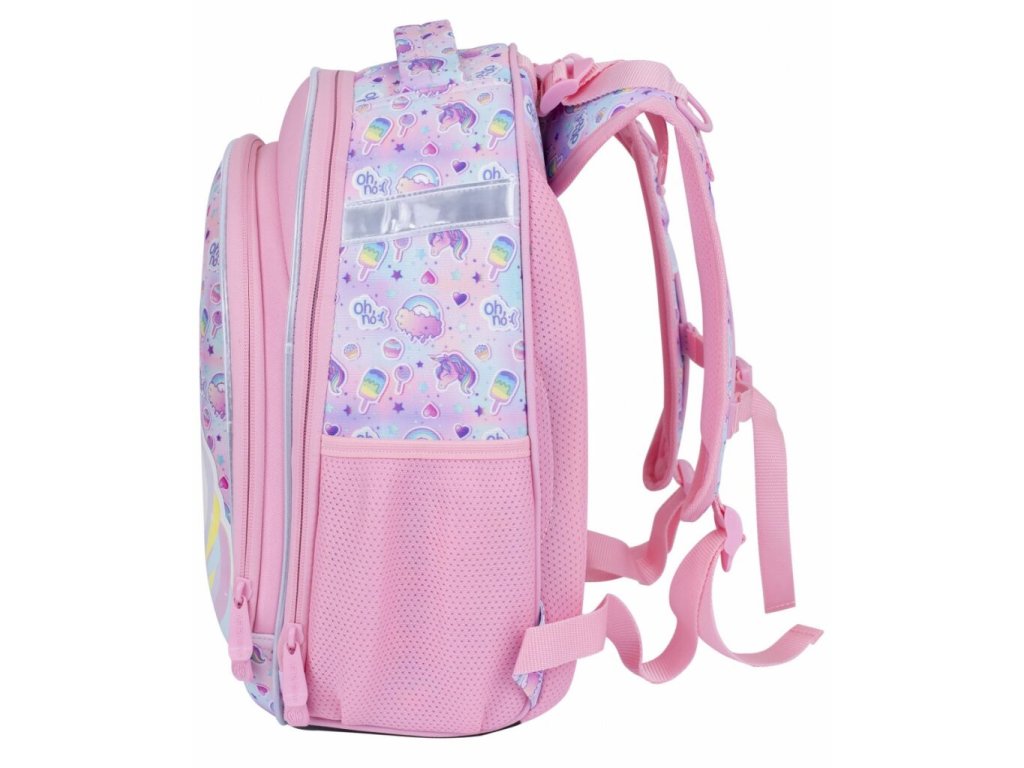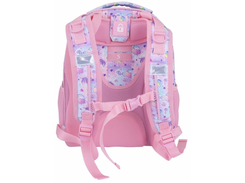 • prostorná hlavní komora • uprostřed přední komory jsou přihrádky na příslušenství, telefon, karabina na klíče, kapsa na zip, síťovaná kapsa • 2 boční kapsy - se síťovinou Komfort a bezpečnost: • ergonomický tvarovaná záda s možností regulace dle velikosti dítěte • měkké, nastavitelné ramenní popruhy • zpevněné tělo batohu • zesílené dno • reflexní prvky • gumové nožičky na spodní straně k ochraně proti poškrábání a znečistěníDoplňkové parametry