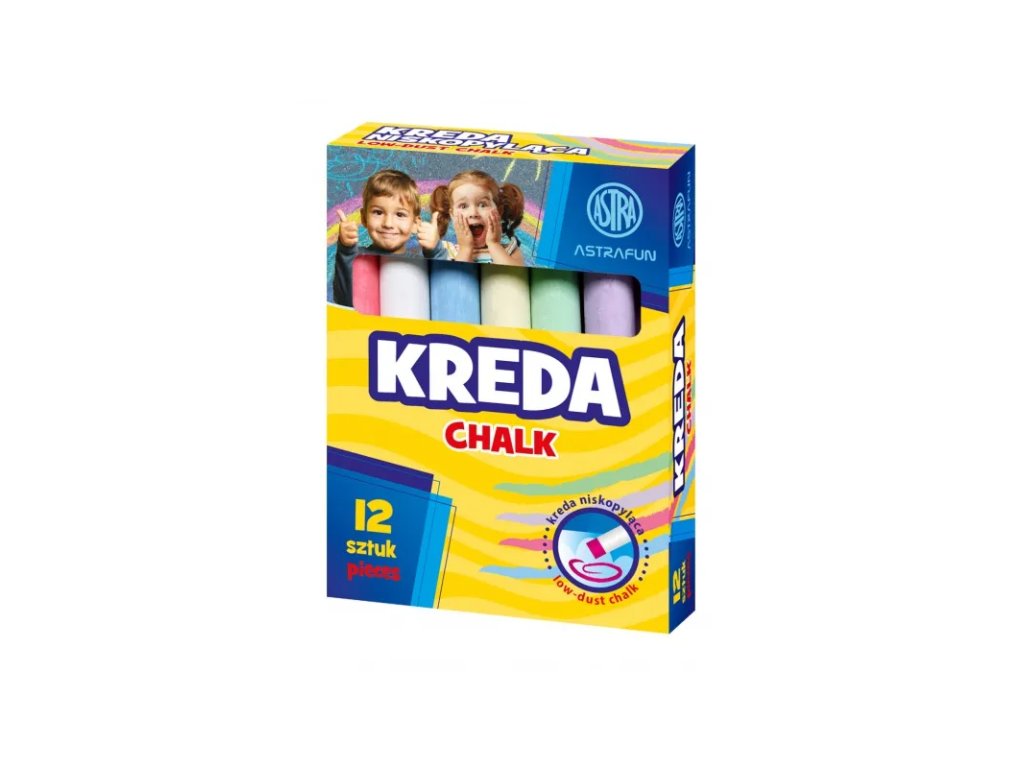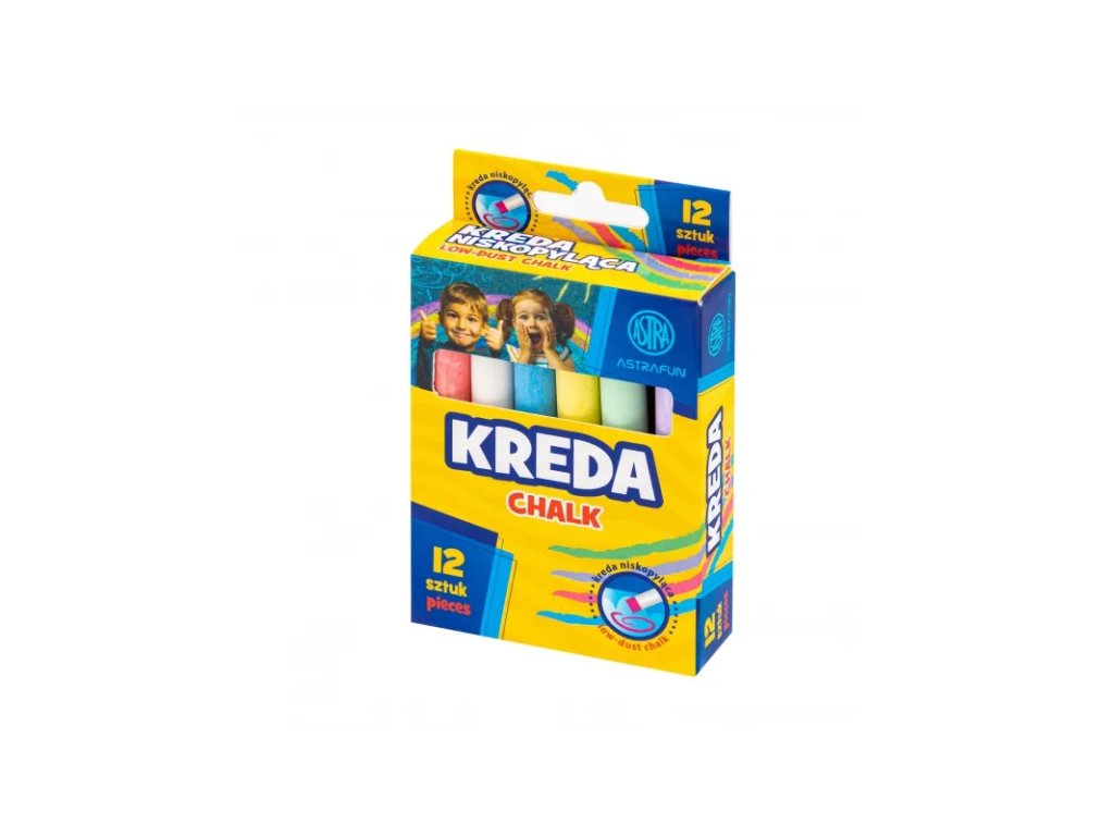 Objevte nekonečné možnosti tvůrčího malování s křídami Astra Fun! Klasická tabulová křída - ideální pro malování na tabuli, skvělá pro školu ale i pro hraní venku.• 12 kusů měkké tabulové křídy (vhodná i jako chodníková)