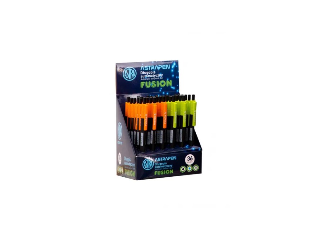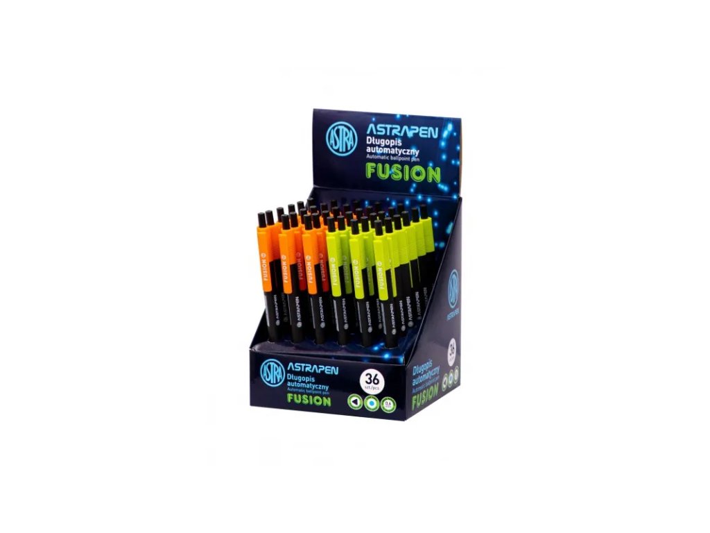 Plastové kuličkové pero ASTRAPEN Colorful o tloušťce stopy 0,6mm. Máte-li zájem o konkrétní model (barvu), uveďte to do poznámky při dokončení objednávky. Celý stojan obsahuje 36ks.• modré propisovací kuličkové pero z kvalitního plastu