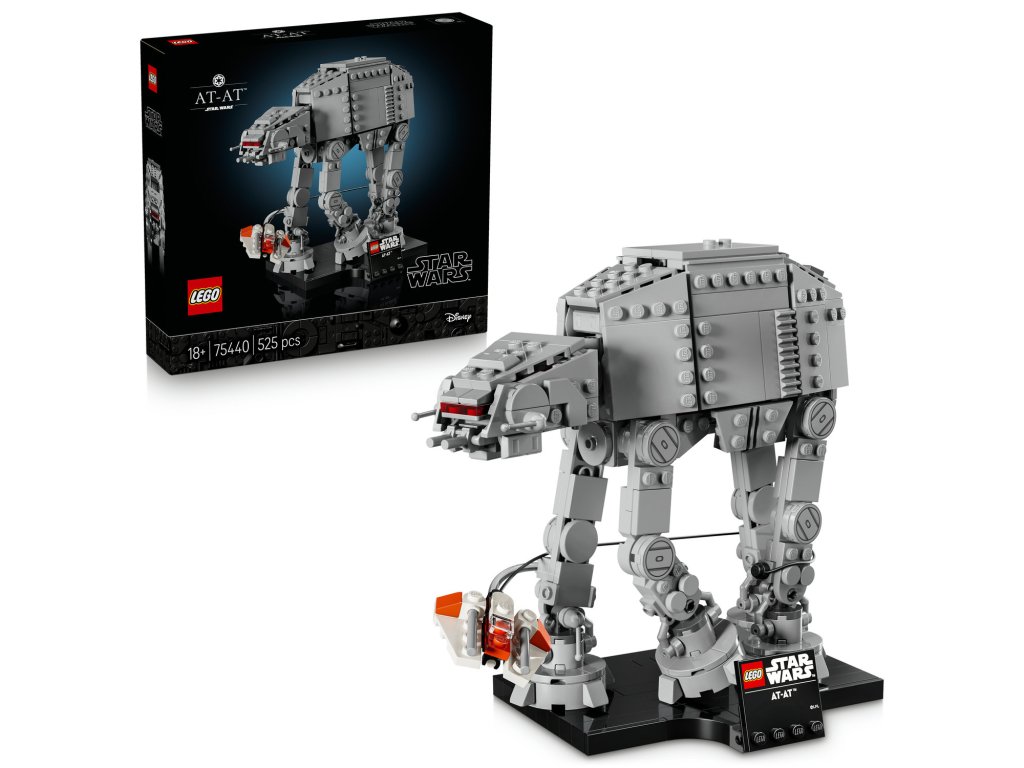 S dynamickou stavebnicí AT-AT (75440) pro dospělé přenesete napětí z bitvy o planetu Hoth až k vám domů. Vytvořte autentické detaily ikonického kráčejícího kolosu AT-AT, který byl nasazen pozemními jednotkami Galaktického impéria. Přidejte sněžný spídr Povstalecké aliance zachycený v letu, který omotává své tažné lano kolem nohou AT-AT, stejně jako v napínavém filmu Star Wars: Impérium vrací úder. Vychutnejte si chvíle klidu a plně se ponořte do stavění tohoto modelu, který přinese vlnu nostalgie a pocit naplnění. Hotové dílo si vystavte na podstavci s cedulkou s názvem. Stavebnice je součástí sbírky výstavních vesmírných lodí střední velikosti z řady LEGO® Star Wars™ a poslouží jako skvělý dárek, kterým potěšíte sami sebe nebo jiné dospělé fanoušky a sběratele. Stavějte chytřeji s aplikací LEGO Builder – přibližujte a otáčejte model ve 3D, sledujte svůj pokrok a postupujte podle podrobného digitálního návodu. Stavebnice obsahuje 525 dílků.Doplňkové parametry