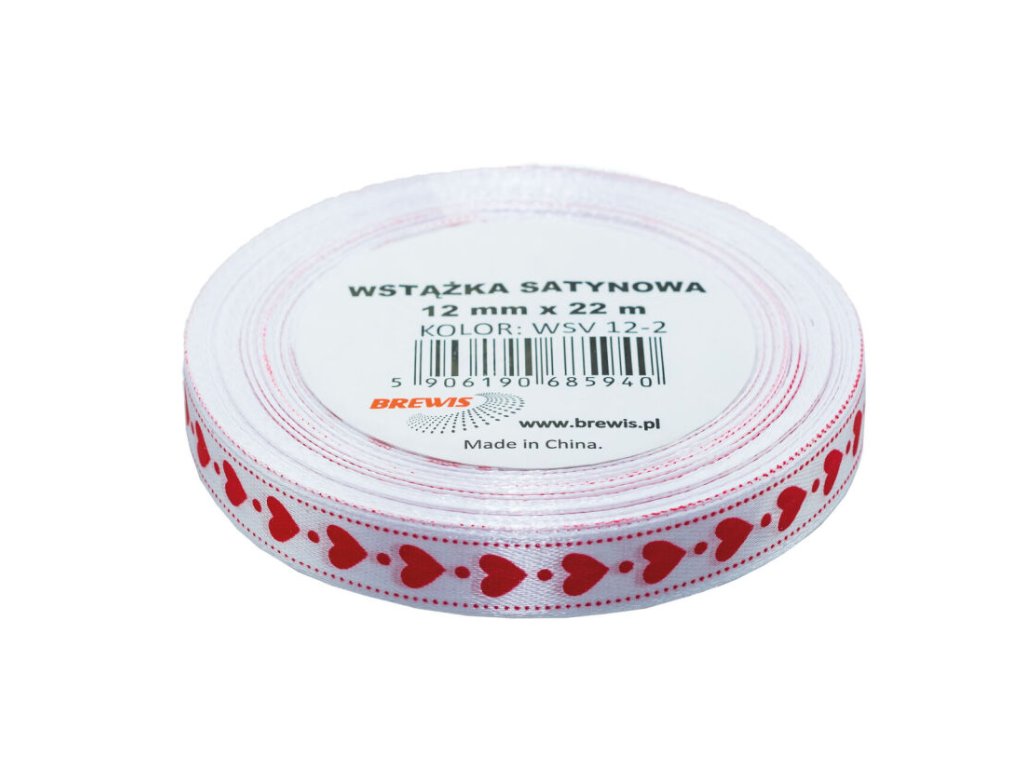Atlasová stuha s vzorem srdce 12 mm - 2