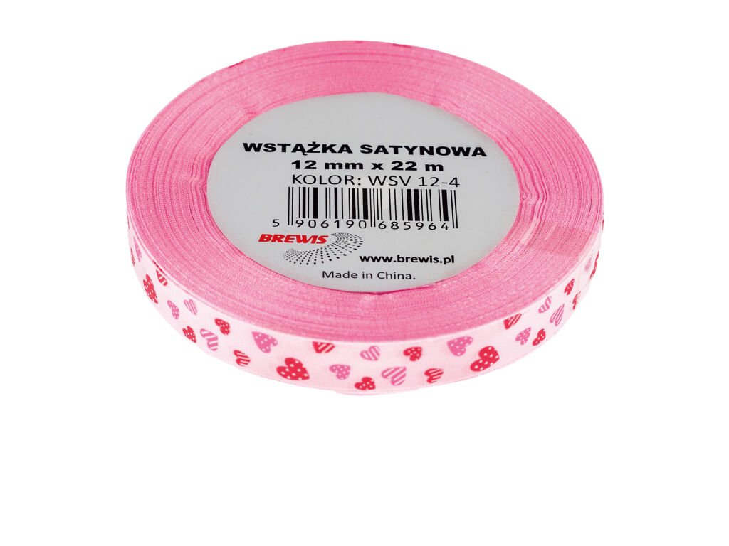 Atlasová stuha s vzorem srdce 12 mm - 4