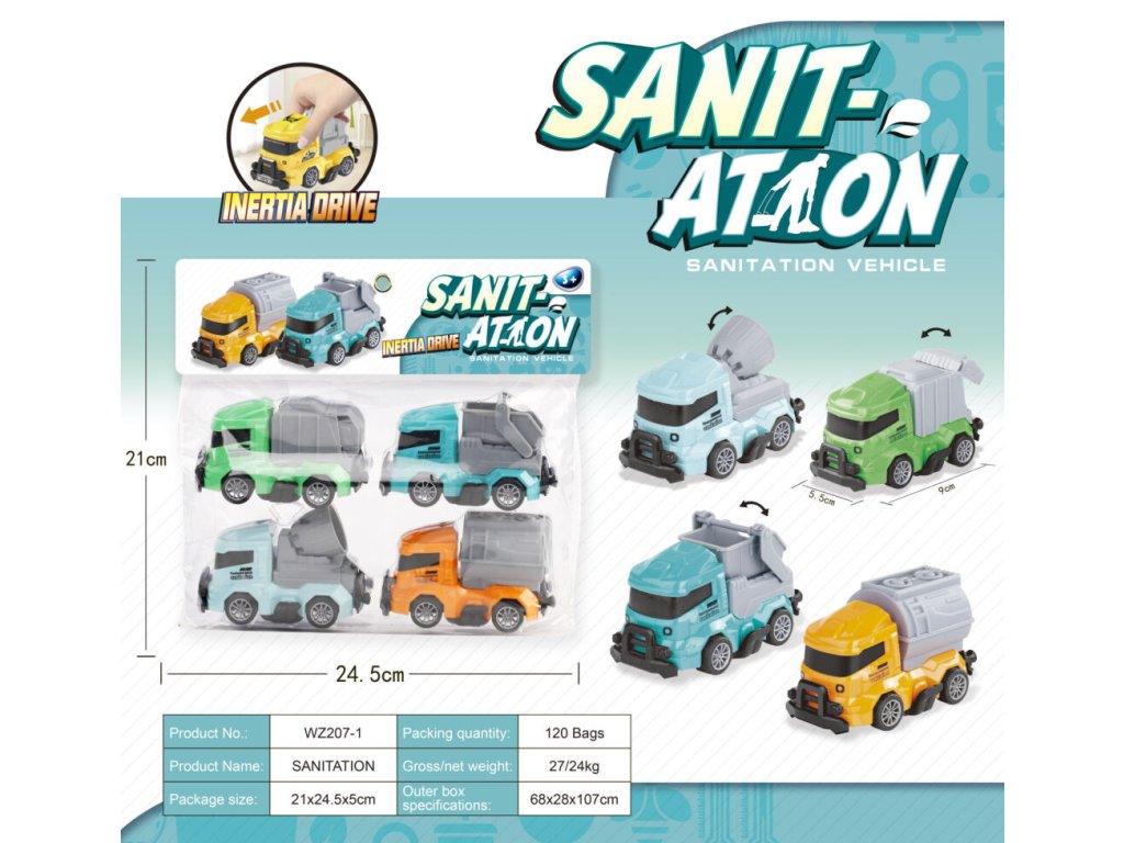 Auta úklidová 4 ks. Rozměry auta 9x5,5x6,5 cm. Na setrvačník. Pro děti od 3 letDoplňkové parametry