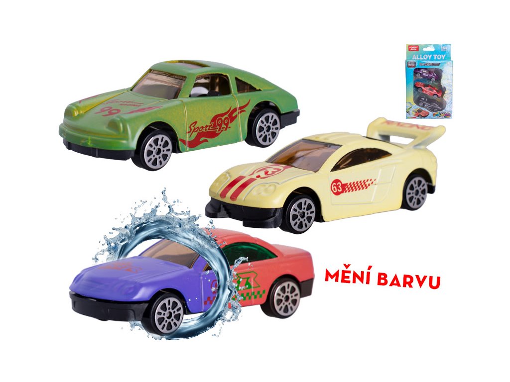 Auto 7cm kov volný chod měnící barvu 2druhy, 3ks v krabičce