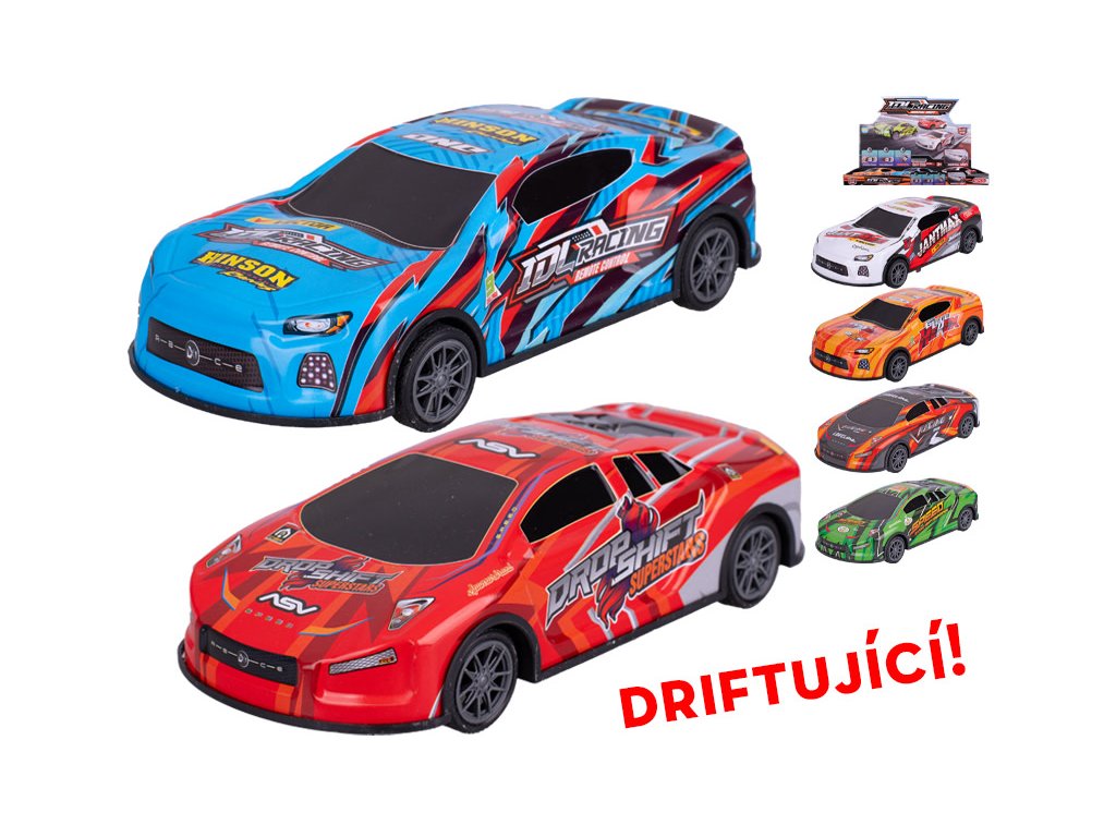 Auto driftující 17,5cm, kov, na setrvačník, 2druhy , 3barvy