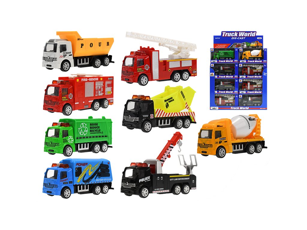 Auto nákladní kov 10cm 1:55 zpětný chod 8druhů v krabičce 24ks v DBX