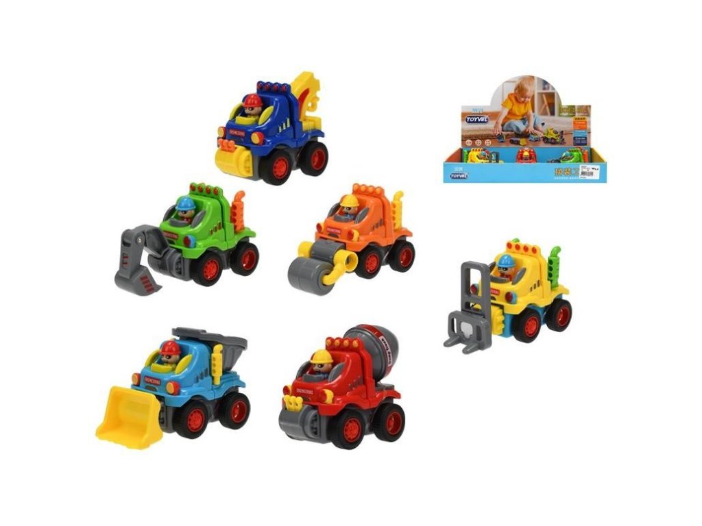 Veselé stavební auta na setrvačník Plně funkční Vhodné pro děti od 12 měsíců Rozměry cca: 10 x 7 x 5 cm V případě, že preferujete pouze určitý typ, uveďte prosím tuto skutečnost do poznámky při objednání zbožíDoplňkové parametry