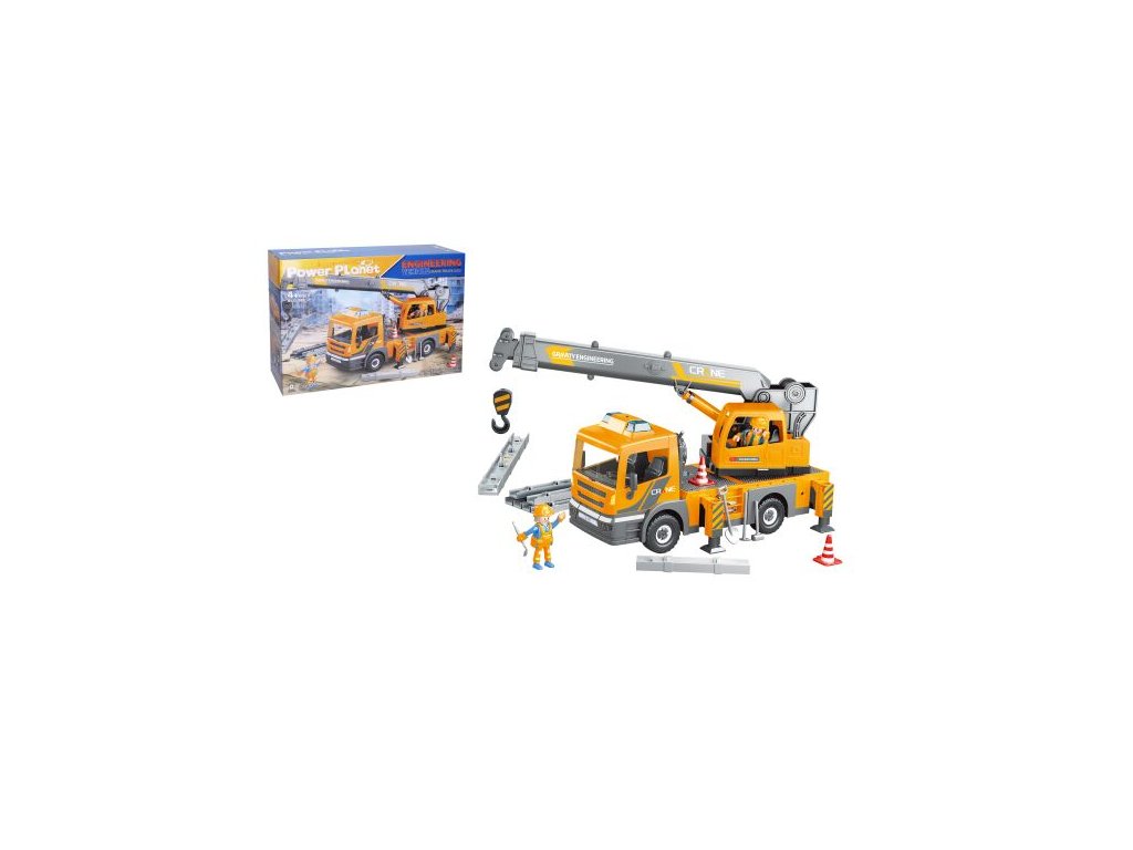 Autojeřáb s efekty, stavebnice. Velikost jeřábu 41 cm. Pohyblivé rameno jeřábu. Světelné a zvukové efekty. Baterie 2xAAA není součástí balení.Doplňkové parametry