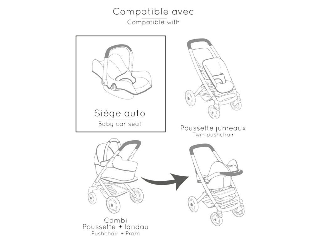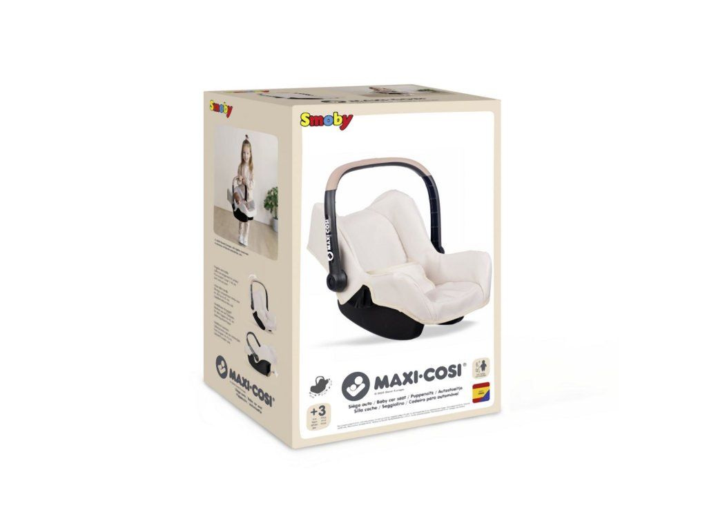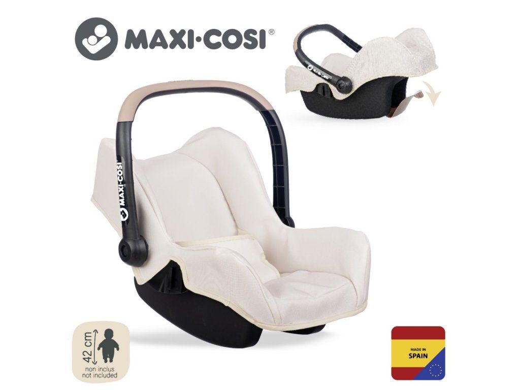 Autosedačka s rukojetí v originálním designu Maxi-Cosi s béžovým látkovým potahem a bezpečnostním pásem. S úložným prostorem na zadní straně sedadla. Lze nasadit na podvozek kočárku (není součástí). Vhodné pro panenky do velikosti 42 cm. Rozměry produktu (DxŠxV): 47 x 32 x 35 cm.Doplňkové parametry