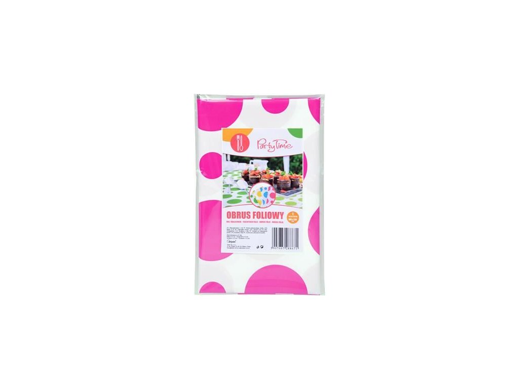 Fóliový ubrus o rozměrech 100 x 130 cm s růžovými puntíky.Doplňkové parametry