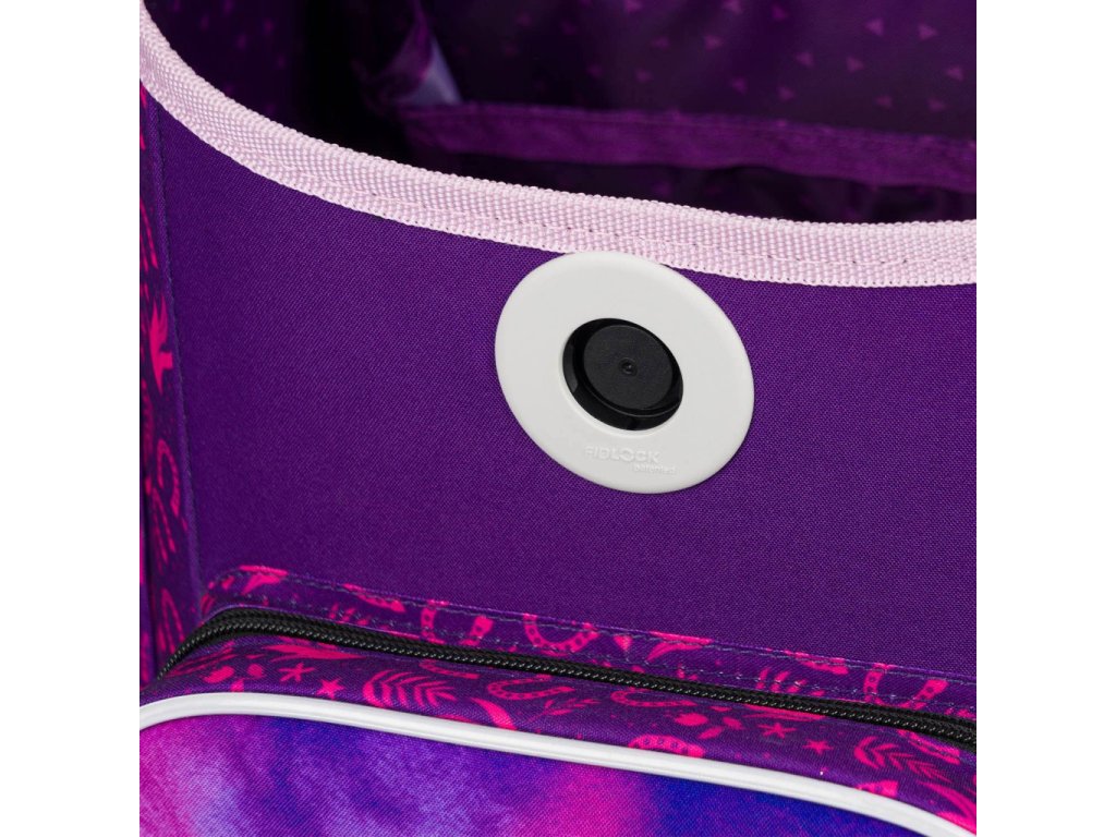 • Kvalitní magnetické zapínání Fidlock k otevření aktovky postačí pouhé otočení přezky a uzavření aktovky probíhá díky magnetickému systému automaticky, bez nutnosti manuálního zapínání.