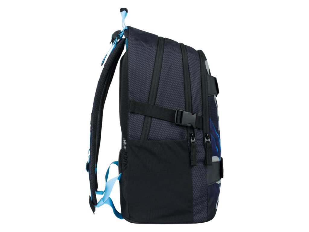 ŠKOLNÍ BATOH SKATE BLUELIGHT• Ergonomický školní batoh se třemi samostatně uzavíratelnými komorami s vnitřním organizérem a kapsou na 15palcový notebook či tablet.