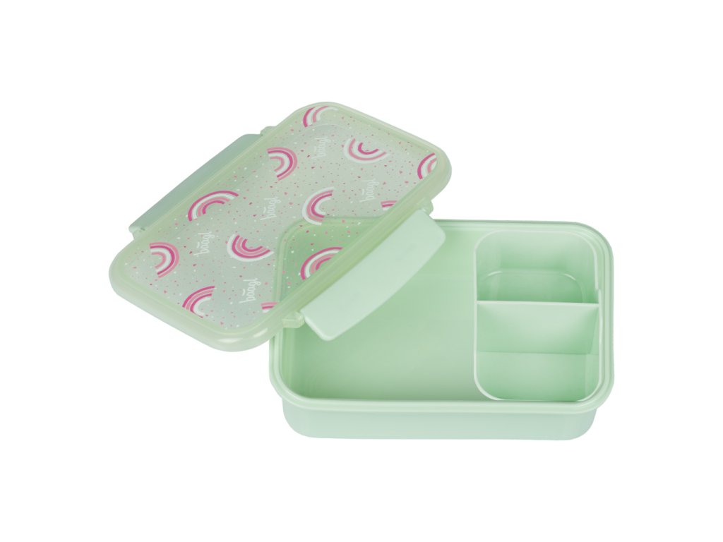 • Praktický a variabilní svačinový box s vyjímatelnými přihrádkami pro snadné oddělení jednotlivých jídel.• Splňuje nejpřísnější normy pro kontakt s potravinami a neobsahuje BPA.