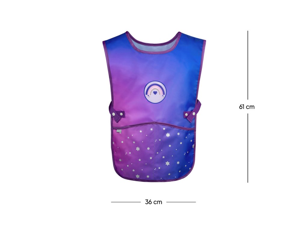 • Dětská zástěra na výtvarnou výchovu, pracovní činnosti a další kroužky.• V dolní části zástěry jsou dvě kapsy.