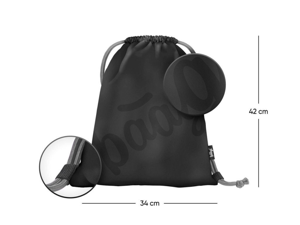 • Sáček na cvičky nebo přezůvky v černé barvě s logem Baagl.• Zdrhování pomocí pevných tkanic, které zároveň umožňují nošení na zádech.