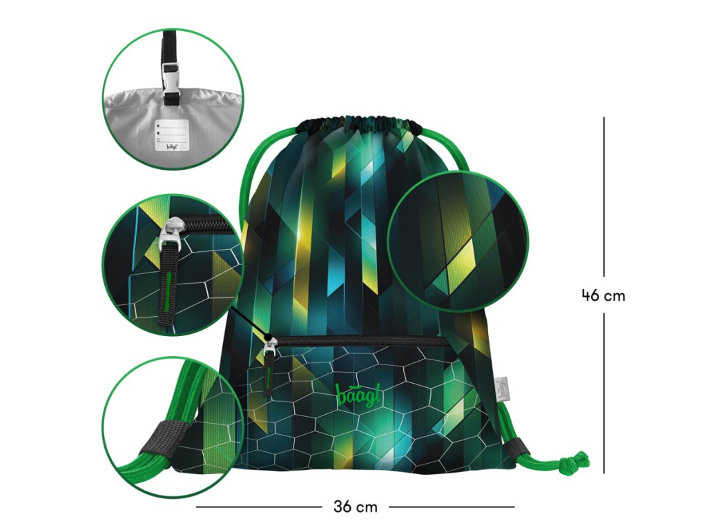 • Sáček na obuv či jiné volnočasové aktivity.• Sáček je vybaven karabinkou díky, které ho lze připevnit na aktovku.