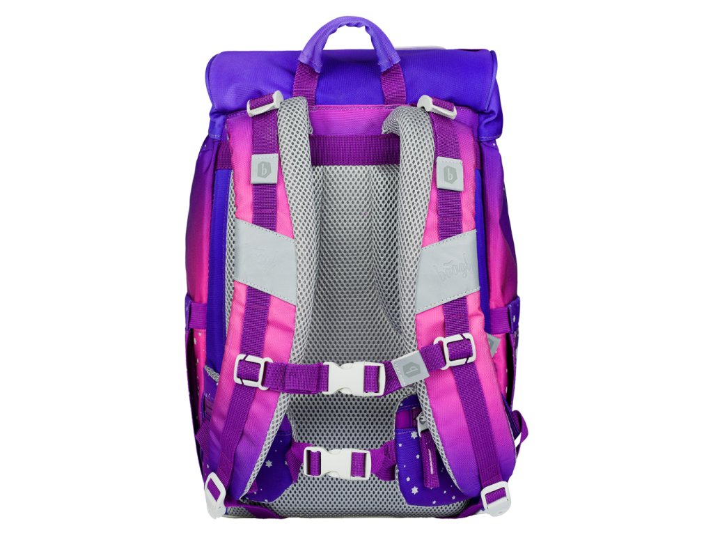 • Jednokomorové vnitřní uspořádání s kapsou a gumičkou pro uchycení desek na zádové straně slouží ke snadné organizaci všech školních pomůcek.