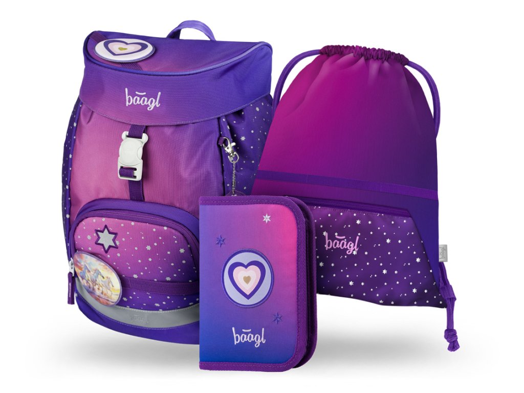 BAAGL SET 3 Airy Koně srdce: batoh, penál, sáček